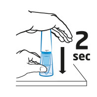 |  | 2. LADE Før hver behandling må VorteFri® FREEZE lades med kald gass. Plasser VorteFri® FREEZE stående på et stabilt og flatt underlag, med den transparente korken ned. Hold beholderen med et fast grep. Med den andre hånden, trykk den hvite delen nedover i nøyaktig 2 sekunder. Presser du ned i lenger enn 2 sekunder, vil du bruke mer enn én dose. Bruker du under 2 sekunder, reduseres fryseeffekten. |