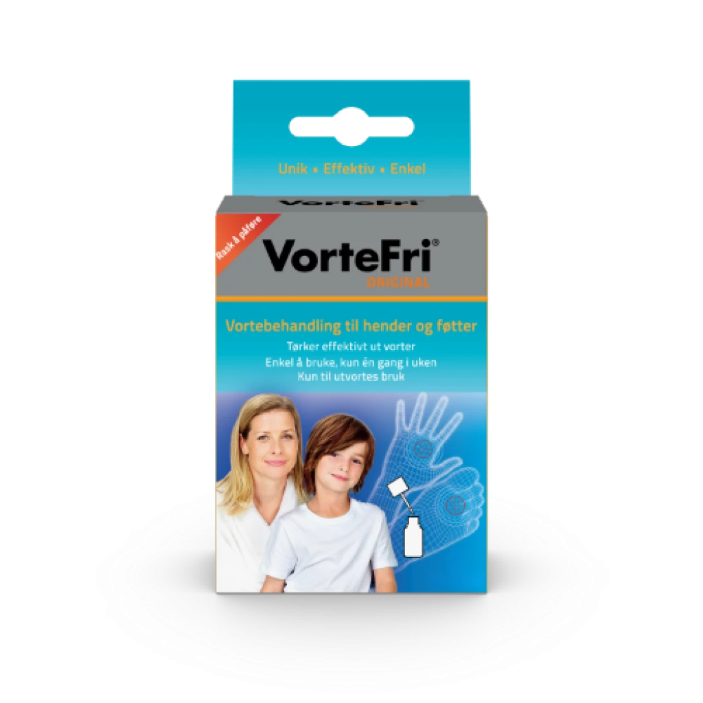 5 mlVorteFri® ORIGINAL tilbyr en kraftfull og praktisk løsning for behandling av vorter på hender, føtter, albuer og knær. Formulert med maursyre trenger den dypt inn i vorten og tørker den ut innenfra, noe som gir et effektivt resultat. Egnet for bruk av hele familien.